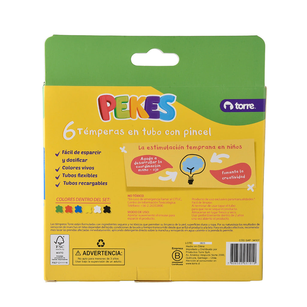 Témpera En Tubo Con Pincel 6 Colores PekesDescripción