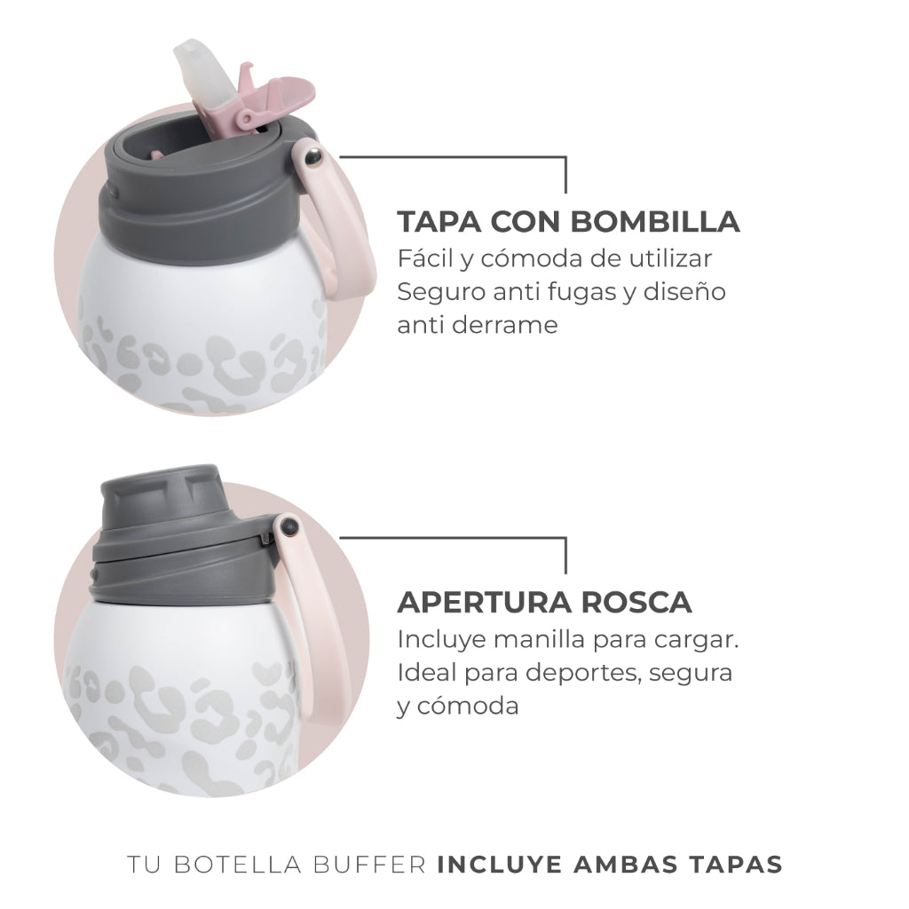 Termo Agua Botella Termica Buffer Capri Acero Inoxidable 1L +Tapas Ice LeopardDescripción