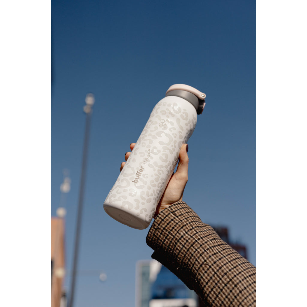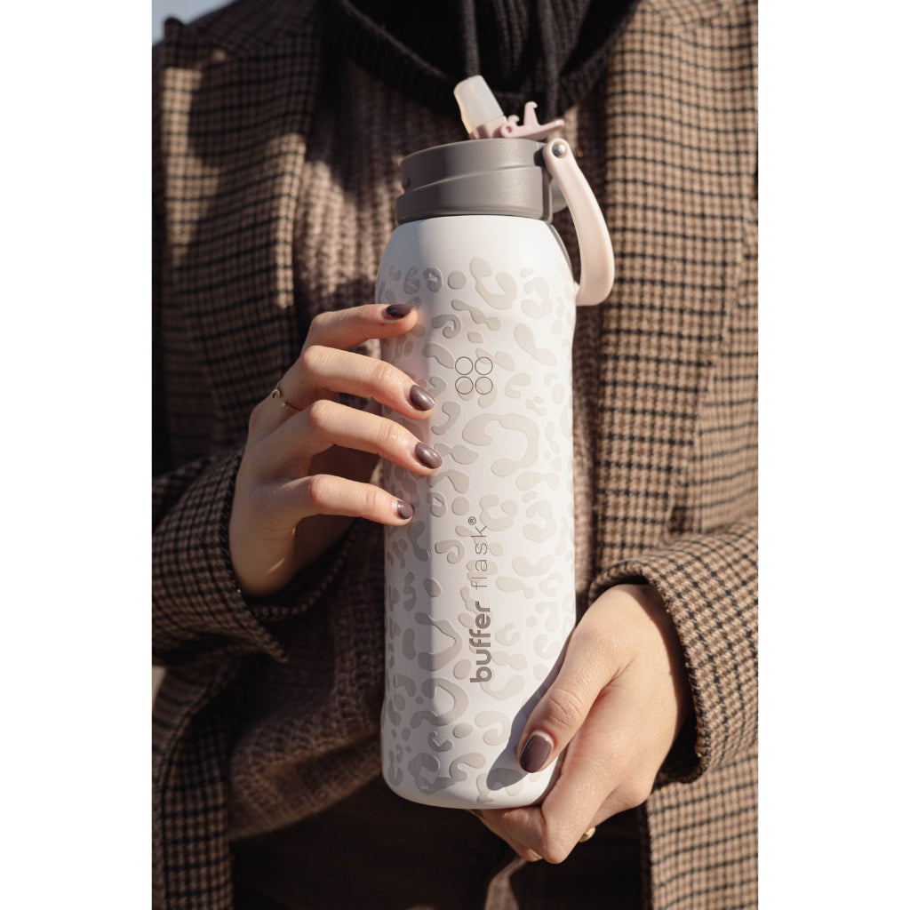 Termo Agua Botella Termica Buffer Capri Acero Inoxidable 1L +Tapas Ice Leopard