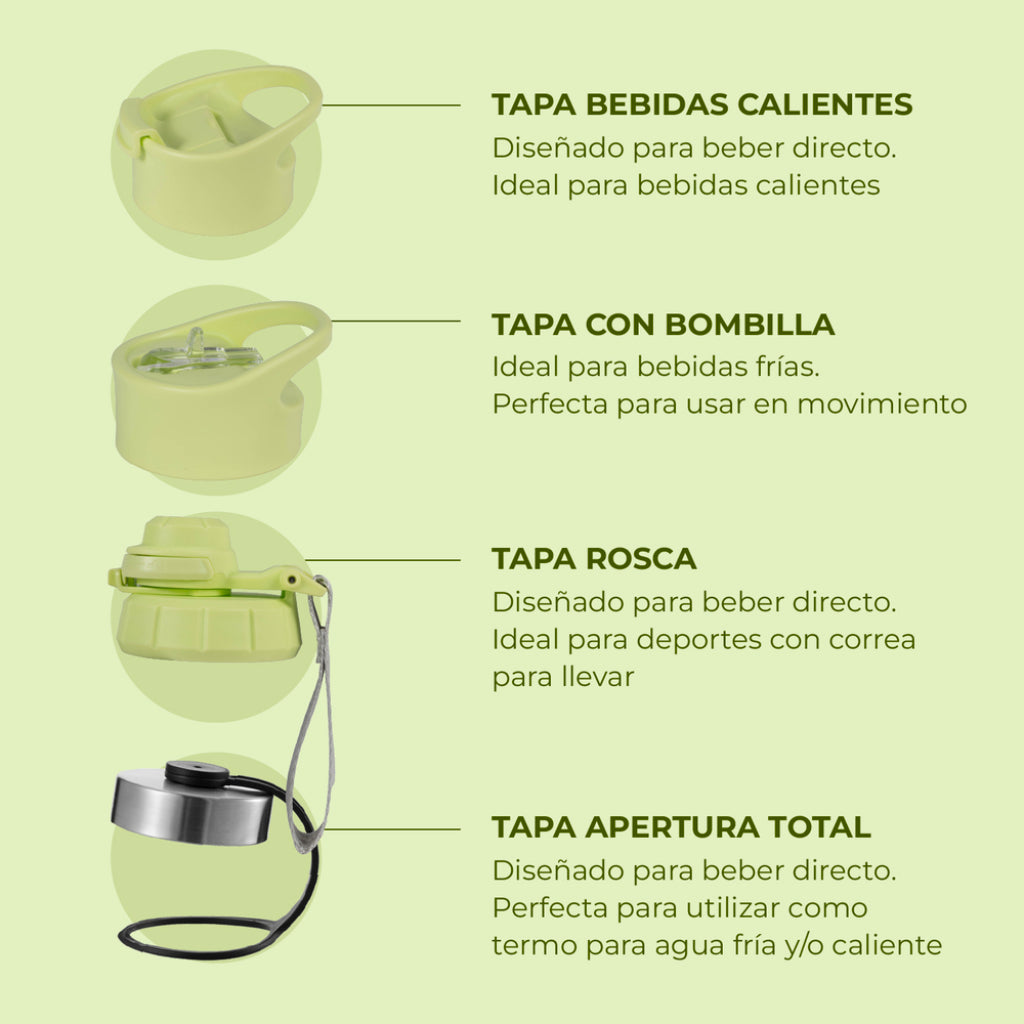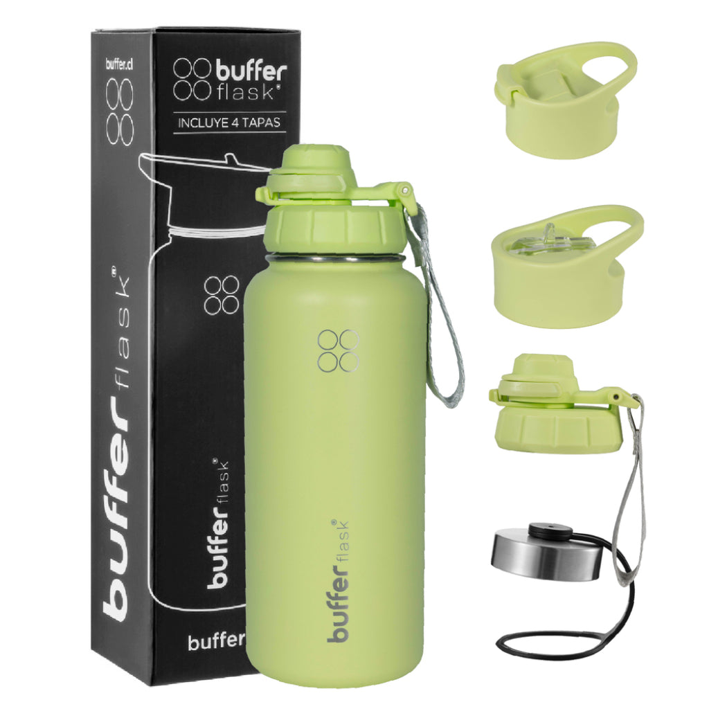 Termo Botella Agua Termica Buffer Morea Acero Inoxidable +4 Tapas Citrus Green