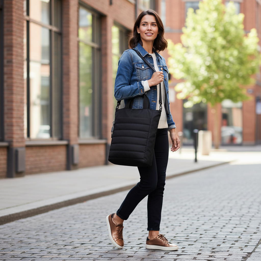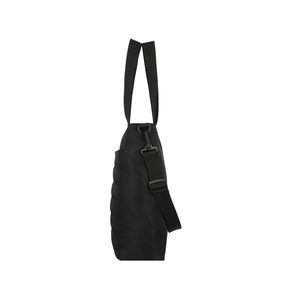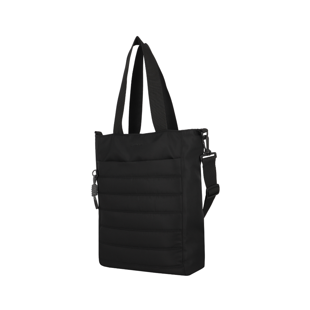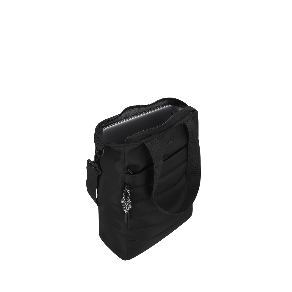 Tote juvenil de 20 litros, ideal para el día a día, universidad u oficina, combinando estilo y funcionalidad. Cuenta con compartimento principal, bolsillo frontal, correa de hombro ajustable y desmontable y colgante decorativo incluido. En su interior incluye bolsillo para laptop de 14''. Además, su forro está hecho con botellas recicladas, aportando un enfoque más responsable sin perder diseño.