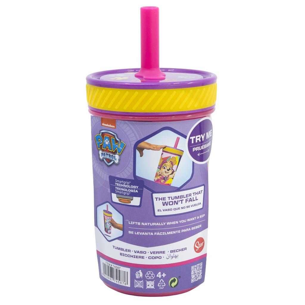 Vaso con Bombilla Silicona Antivuelco Paw Patrol Rosado 370mlDescripción